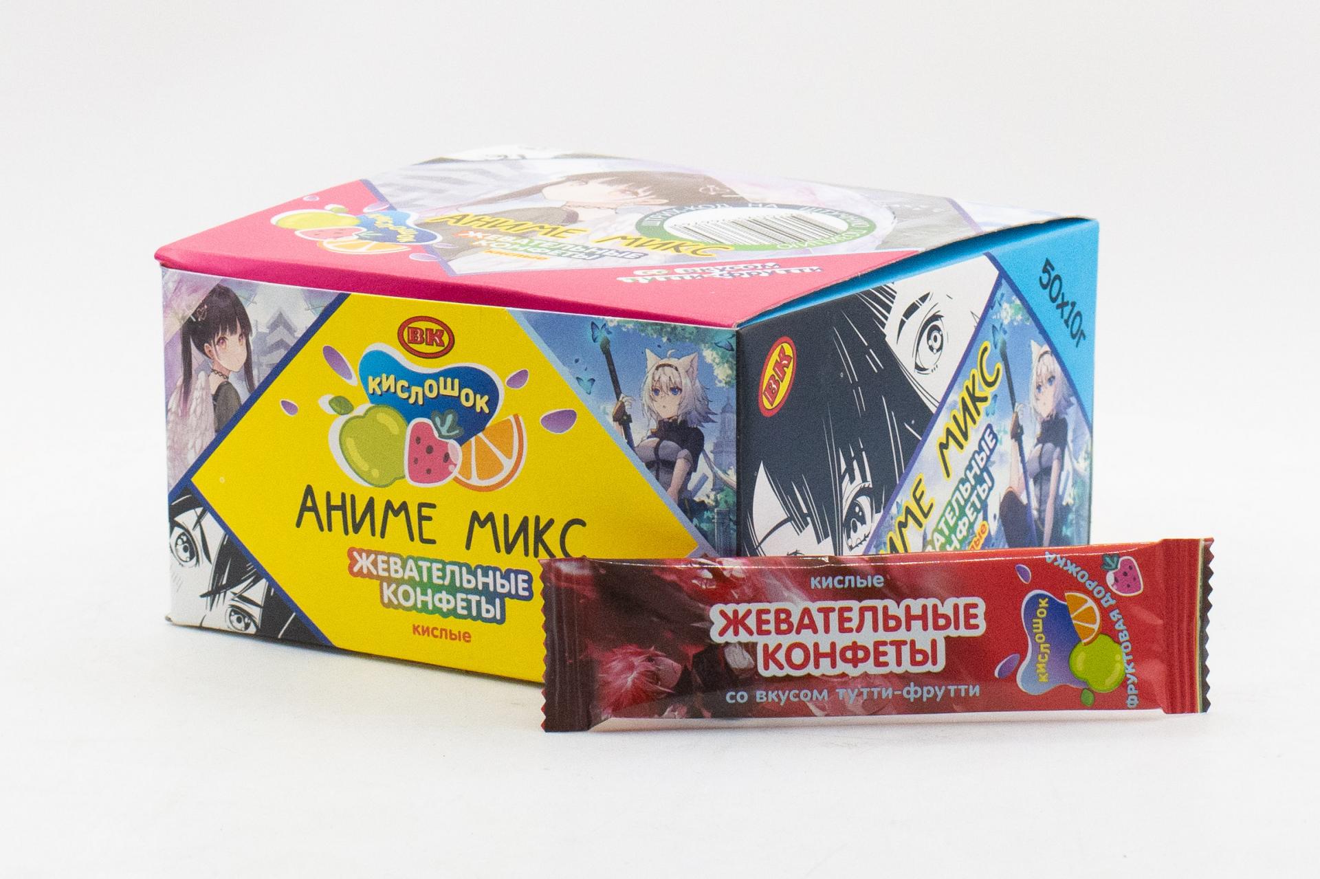 Жевательная конфета Кислошок Аниме микс со вкусом тутти-фрутти (Россия) 10г0,00 руб. за штуку (в упак. 50 шт.) |